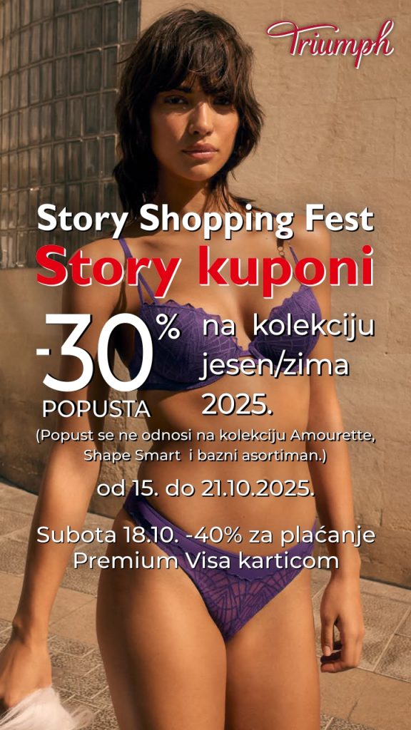 Svaki donosioc Story kupona dobiva -30% popusta na kolekciju jesen/zima 2025. Popusti vrijede kod svih oblika plaćanja i ne odnose se ne kolekciju Amourette, Shape Smart i bazni asortiman.